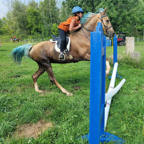 We offer a 70 x 144 indoor riding arena, a 100 x 200 outdoor arena, and an indoor space perfect for crafts and parties. We offer multiple pastures, providing ample space for our animals to roam freely, along with a cross-country course for riding enthusiasts. Our expansive grounds create a serene, natural environment for both riders and horses to enjoy.